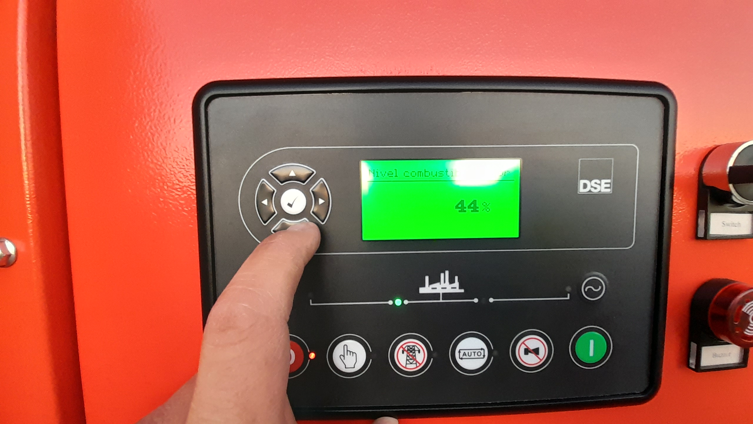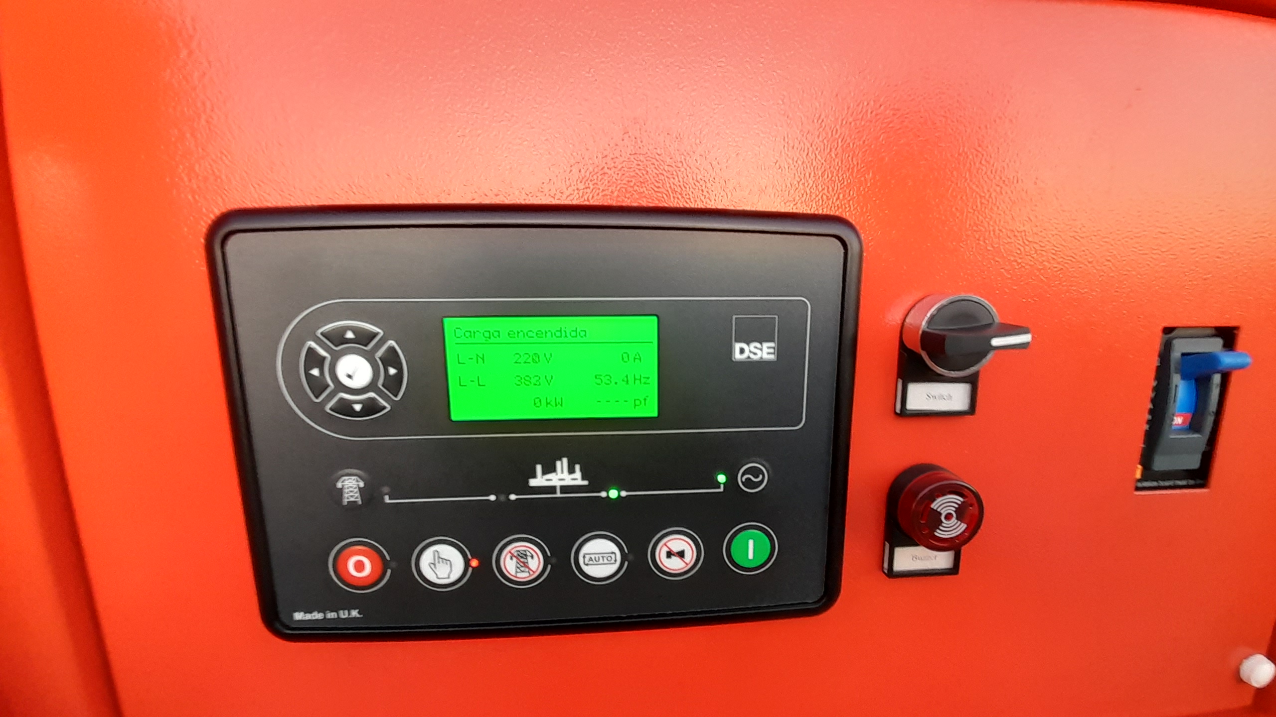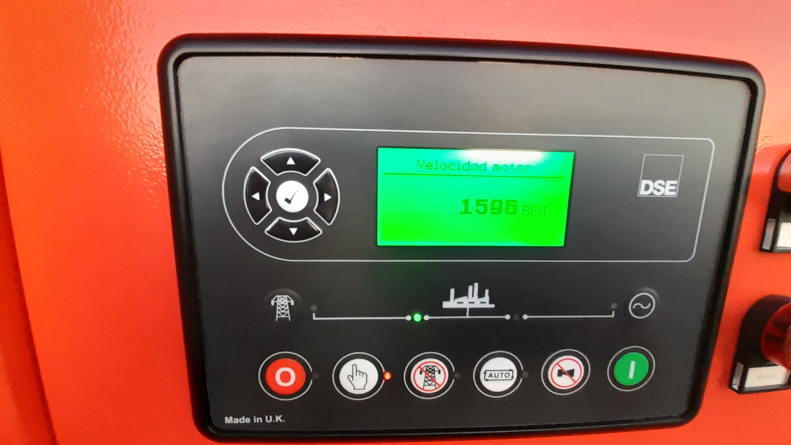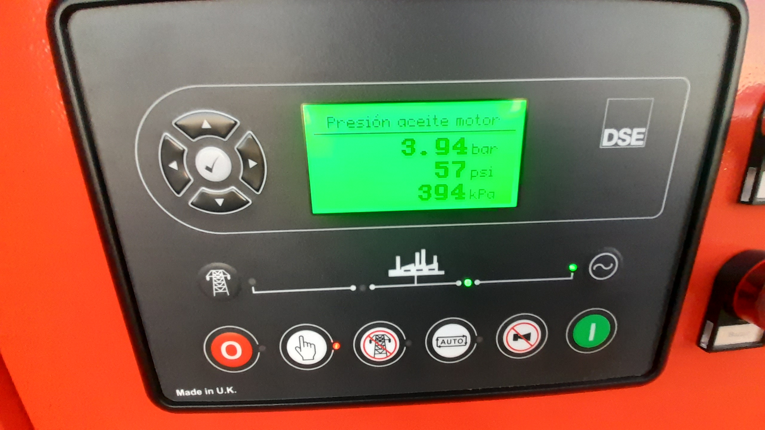 Panel de control marca DSE made un UK con múltiples funciones nivel combustible, horas, energia generada, presion aceite, temperatura motor, cantidad de arranques, RPM, etc