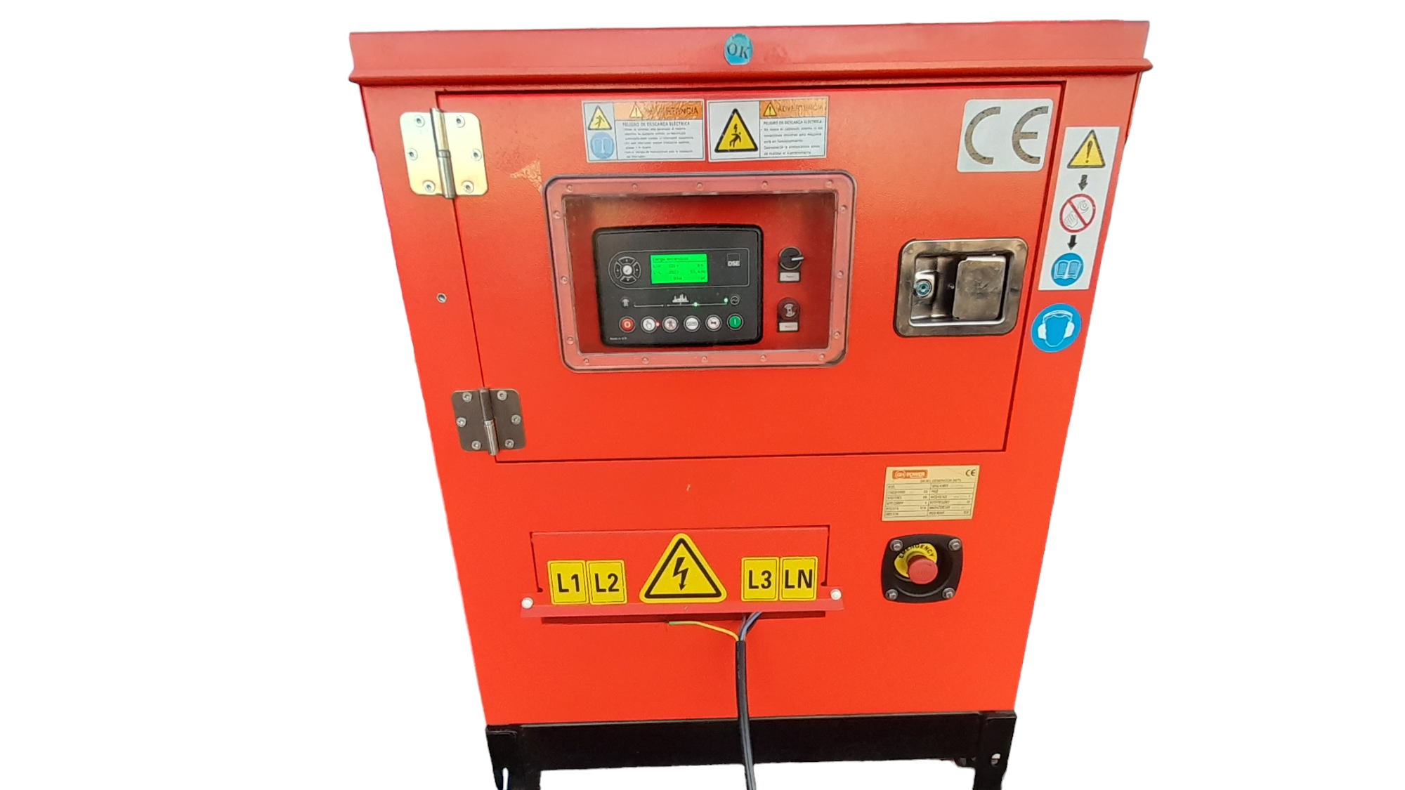 Equipo insonorizado con excelentes prestaciones y muy buenas terminaciones (pintura electrostática en gabinete, bisagras de acero inoxidable, gancho para izaje y cerraduras en todas sus puertas)