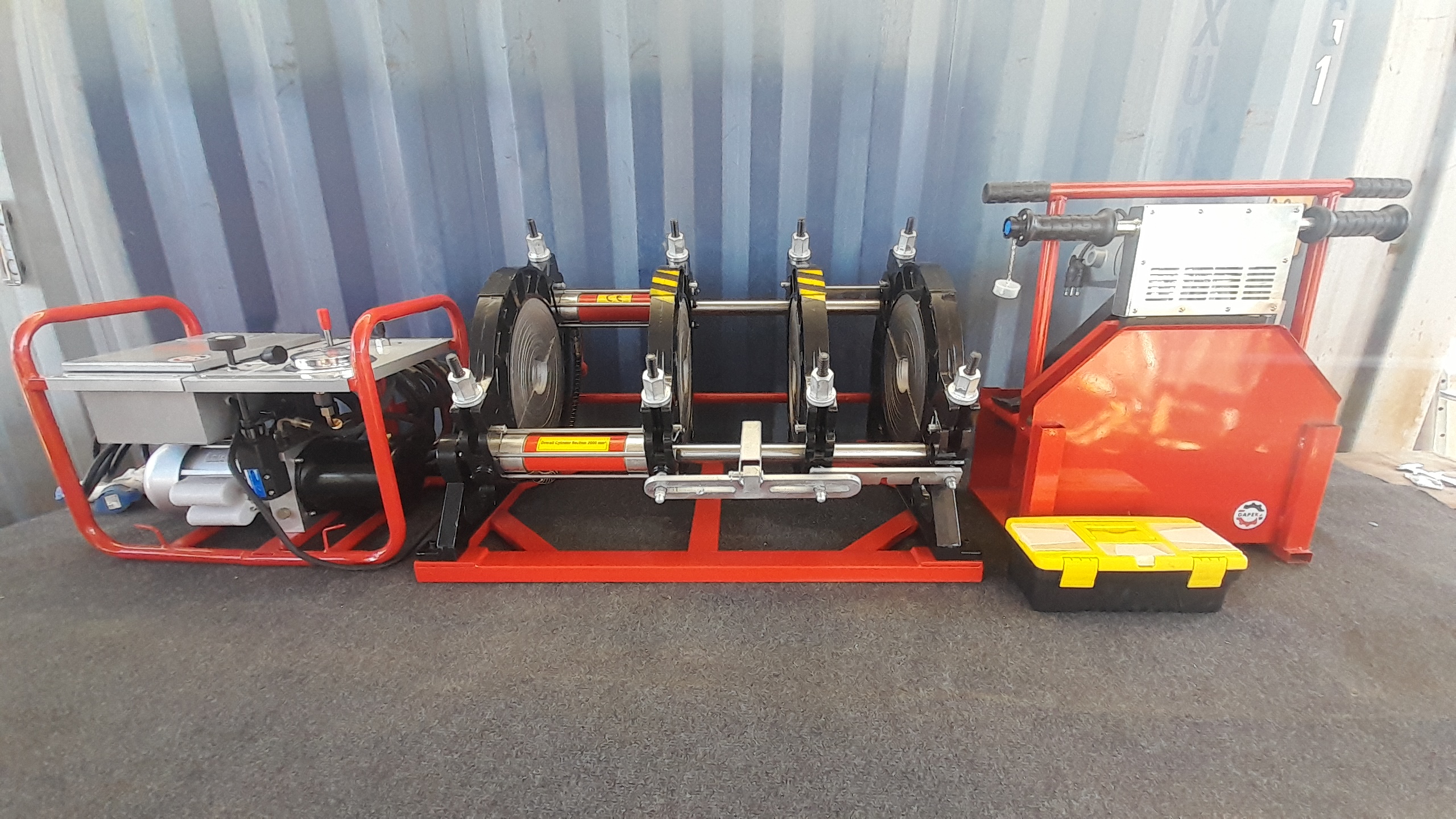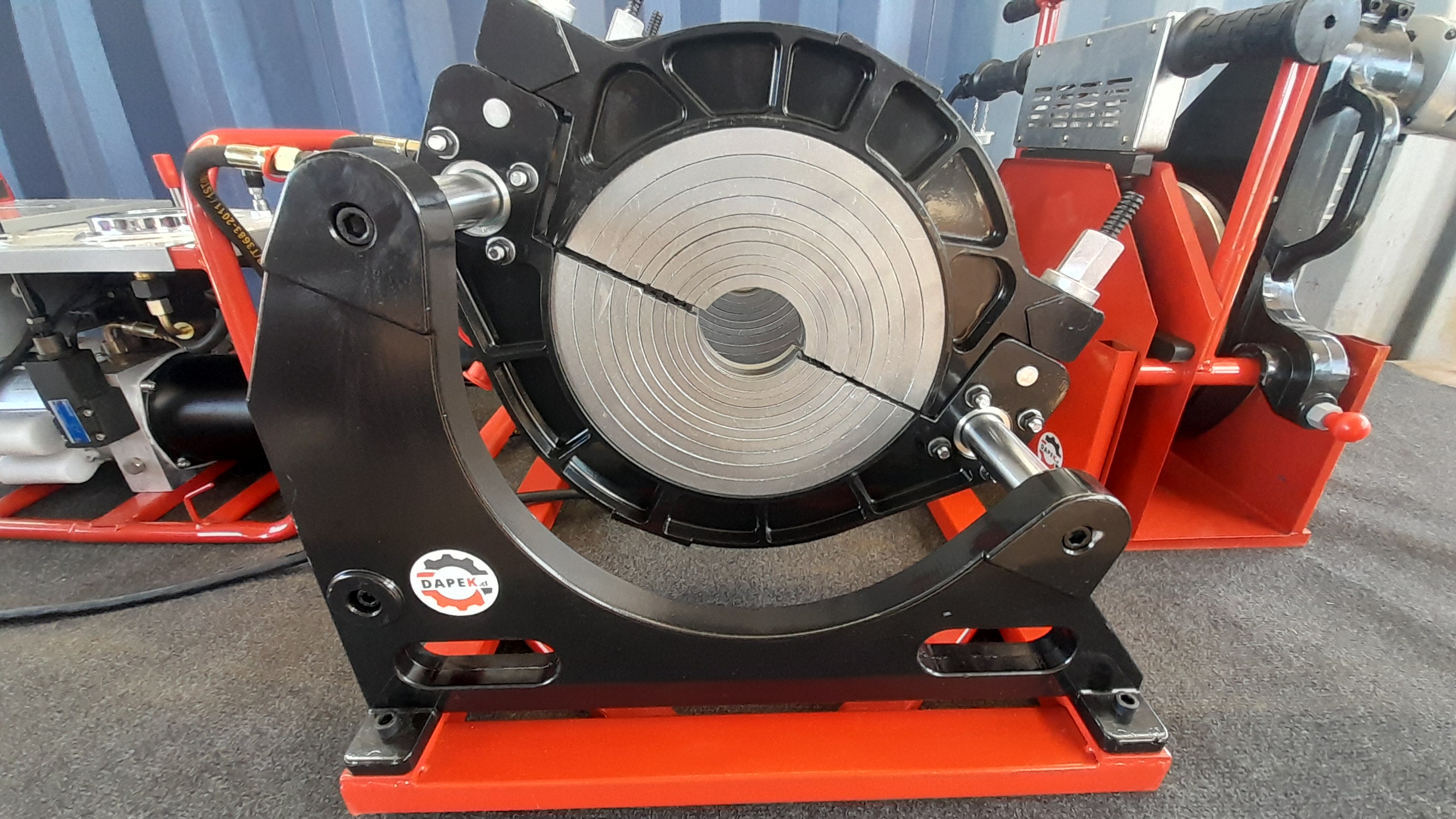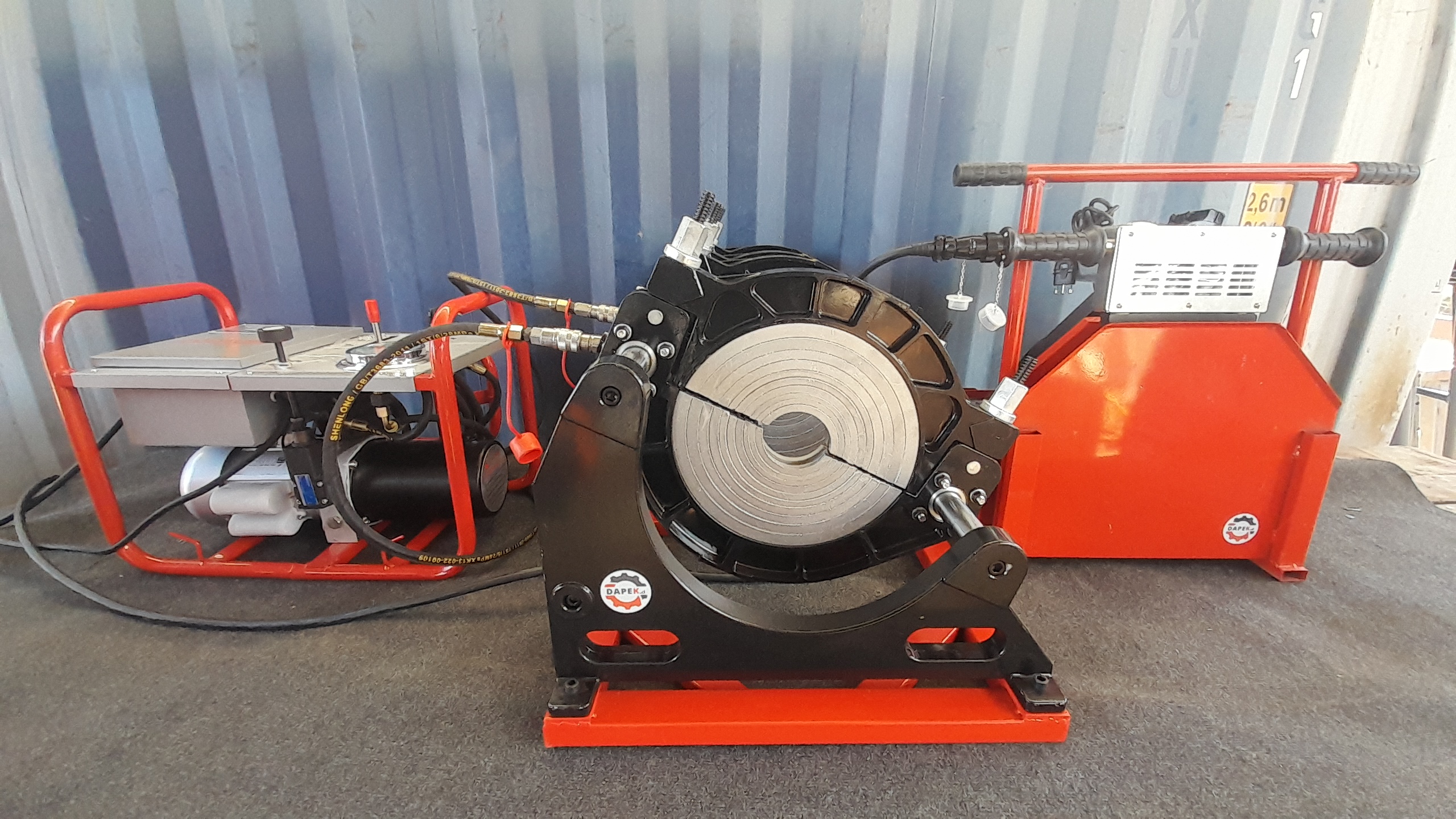 Máquina termofusora – termofusionadora hidráulica lineal para tuberías de HDPE 90-315mm DAPEK – POLYFUSION. Una fácilmente y sin mayor esfuerzo tuberías de HDPE. Antes de soldar, el refrentador rectifica automáticamente con sus cuchillos el canto de ambas tuberías a unir. Seleccione la temperatura deseada para soldar en la unidad de calor y active la unidad hidráulica del equipo para que se acerquen ambos extremos de las tuberías, calibrando presión de arrastre y de soldadura, respete el tiempo de enfriamiento y listo; ¡unión resuelta!. Equipo compatible con nuestro potente generador portátil Diesel de 220v y 7,5KVA -No incluido- pudiendo soldar tuberías de HDPE de hasta 315mm en cualquier lugar, disponiendo al mismo tiempo de energía eléctrica adicional para tus otras herramientas de trabajo.