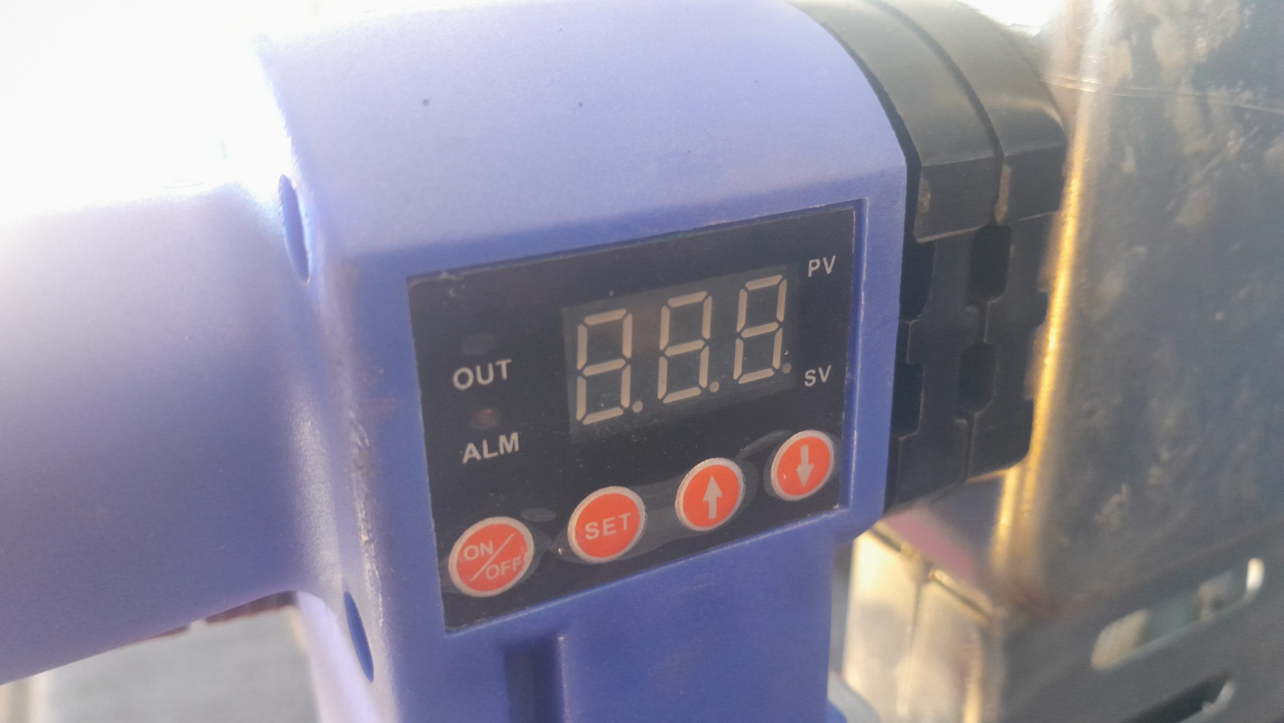 Potencia Unidad de calor Digital: 2,0KW – 270°C Temperatura Max, el ajuste se produce grado a grado. Temperatura recomendada de trabajo en HDPE 220°C.