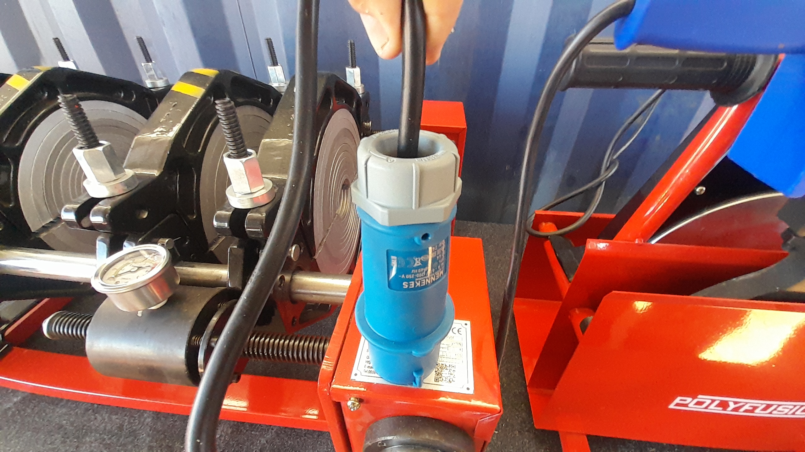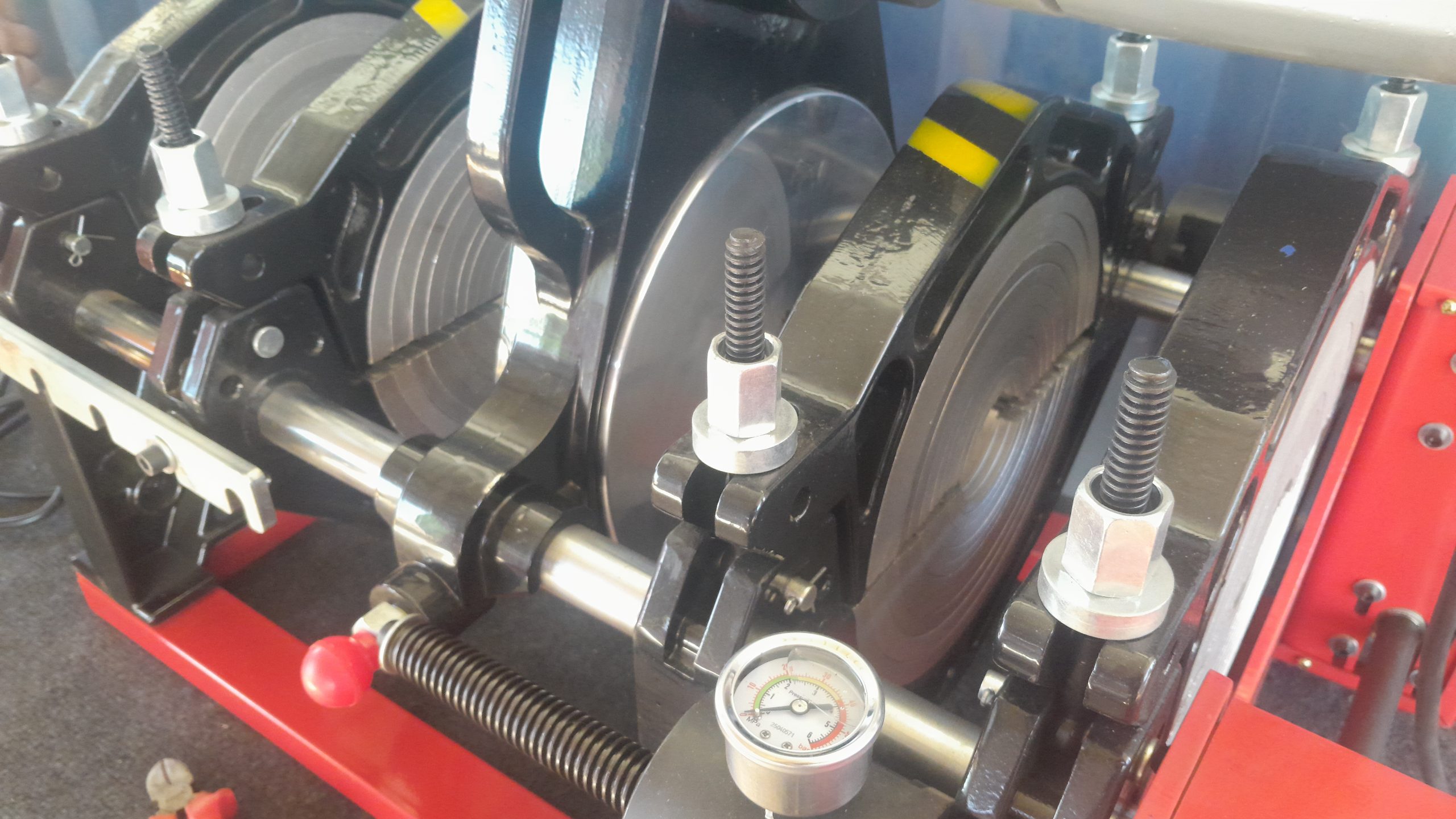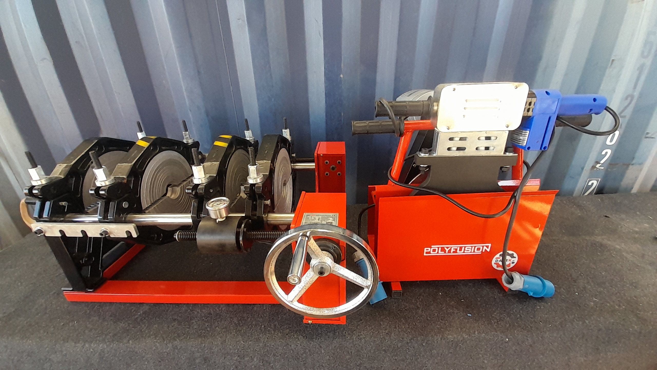 Termofusora manual lineal 4 arcos HDPE 50-250mm Digital DAPEK – POLYFUSION. Una fácilmente tuberías de HDPE con diámetros desde 50 a 250mm. Equipo de fácil uso ideal para espacios reducidos y trabajos preferentemente con tuberías rectas.  Antes de soldar, el refrendador rectifica automáticamente con sus dos cuchillas el borde de ambas tuberías a unir, haciendo que ambas superficies queden completamente alineadas antes de soldarlas con calor. El acercamiento entre ambos extremos de las tuberías se produce de forma manual mediante su manivela y la fuerza ejercida se controla de forma precisa con el manómetro incorporado. Para generar la soldadura, sólo debe ajustar la unidad de calor digital a la temperatura indicada por el fabricante de la tubería, unir mediante la manivela aplicando fuerza y tiempo según tabla de diámetros, respetar el tiempo de enfriamiento y listo, ¡Unión lineal de HDPE resuelta!